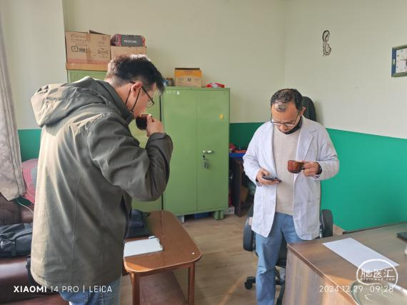 29日一早我們步行來到醫(yī)院,和Adhikari醫(yī)生匯合到放射科獲取今日手術(shù)患者的DICOM文件,然后到科室進行數(shù)據(jù)重建和手術(shù)規(guī)劃,貼心的護士妹妹(他們的護士都是稱呼Sister)給我們準備了手沖的奶茶咖啡,味道還不錯。