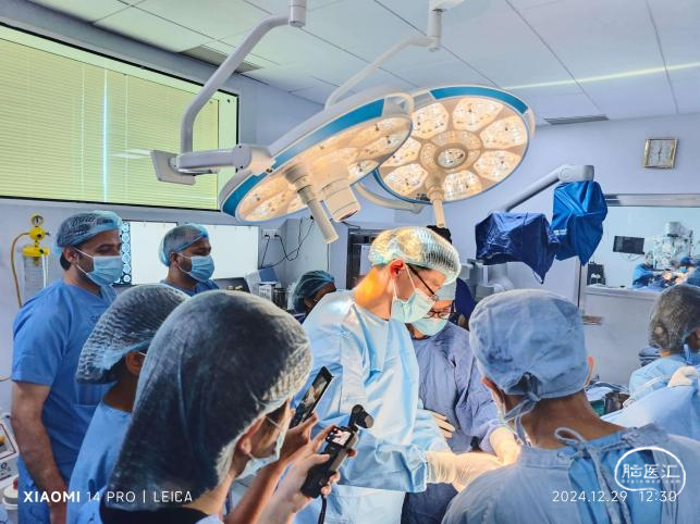 9點半左右來到手術(shù)室,換好手術(shù)衣進入手術(shù)室發(fā)現(xiàn)手術(shù)室雖然裝修并不豪華,但很寬敞,神經(jīng)外科有兩個中間玻璃門隔斷的手術(shù)間,都配有較新款的手術(shù)顯微鏡和內(nèi)鏡。門口還放著一臺日本贈送的神經(jīng)導(dǎo)航系統(tǒng),Rajstha教授告訴我,這個贈送的設(shè)備最大的麻煩是壞了沒法找售后維修。